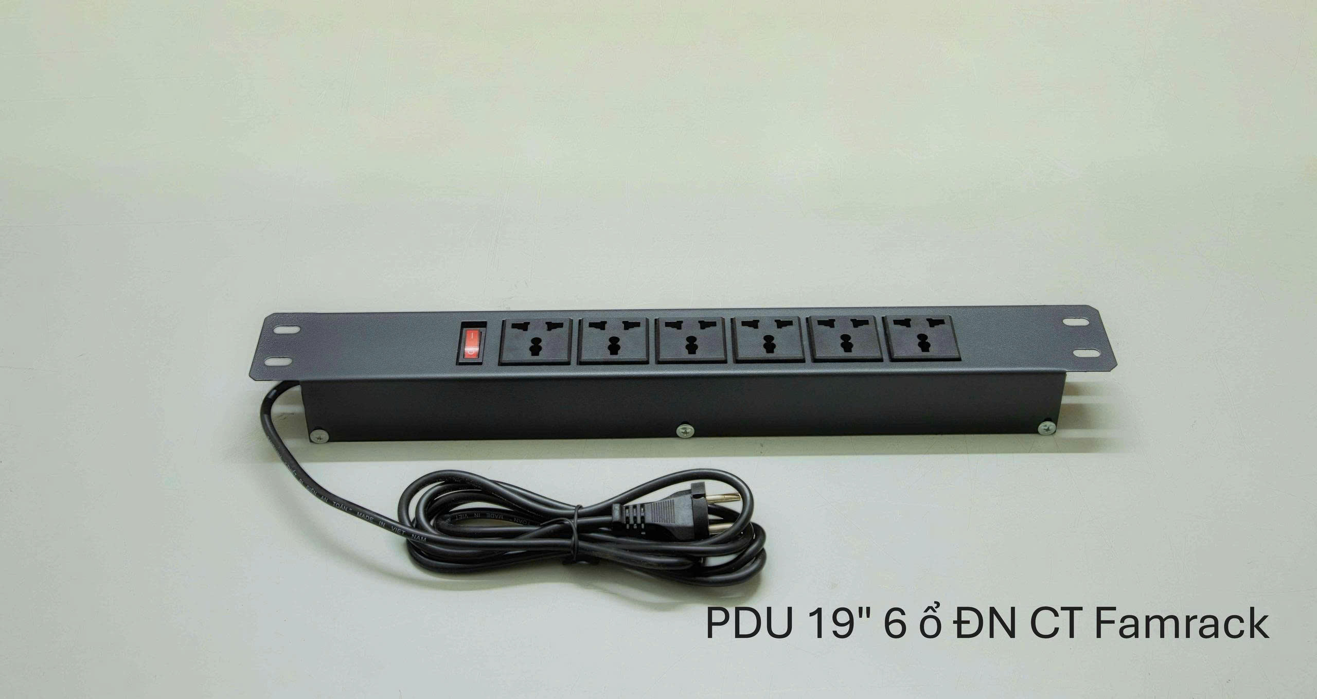Ổ điện 19″, 06 ổ cắm 3 chấu đa dụng, Công tắc , có dây nguồn