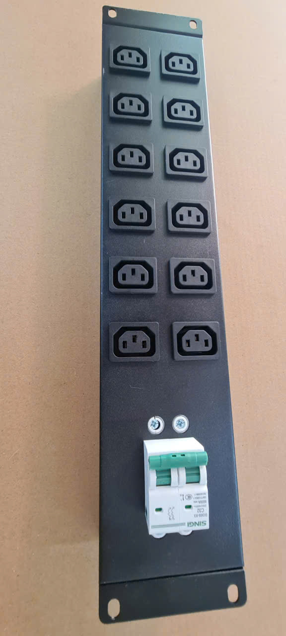 Ổ điện 19″, 12 ổ cắm 3 chấu đa dụng, công suất 30A, MCB 2P 32A