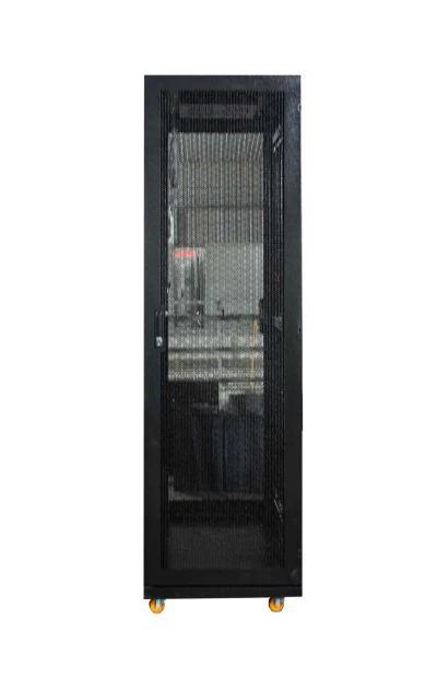 Để sàn trong nhà, Màu sắc: đen/ trắng xám. Kết cấu : Dạng khung riêng, 2 cánh trước và sau dạng lưới có khóa, cánh trước dạng lưới /mica. Hai vách bên tháo rời qua lẫy có khe thoát nhiệt. Đường cáp tín hiệu vào từ dưới lên và từ trên xuống |